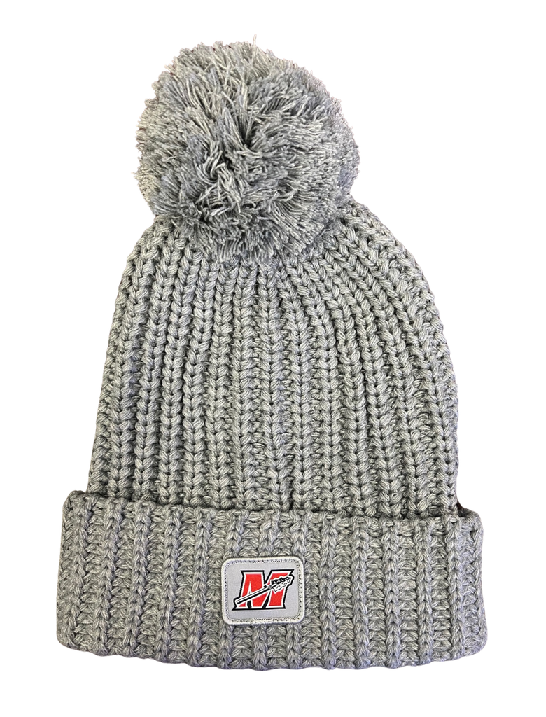 Gray Cable Knit Woven Patch Hat