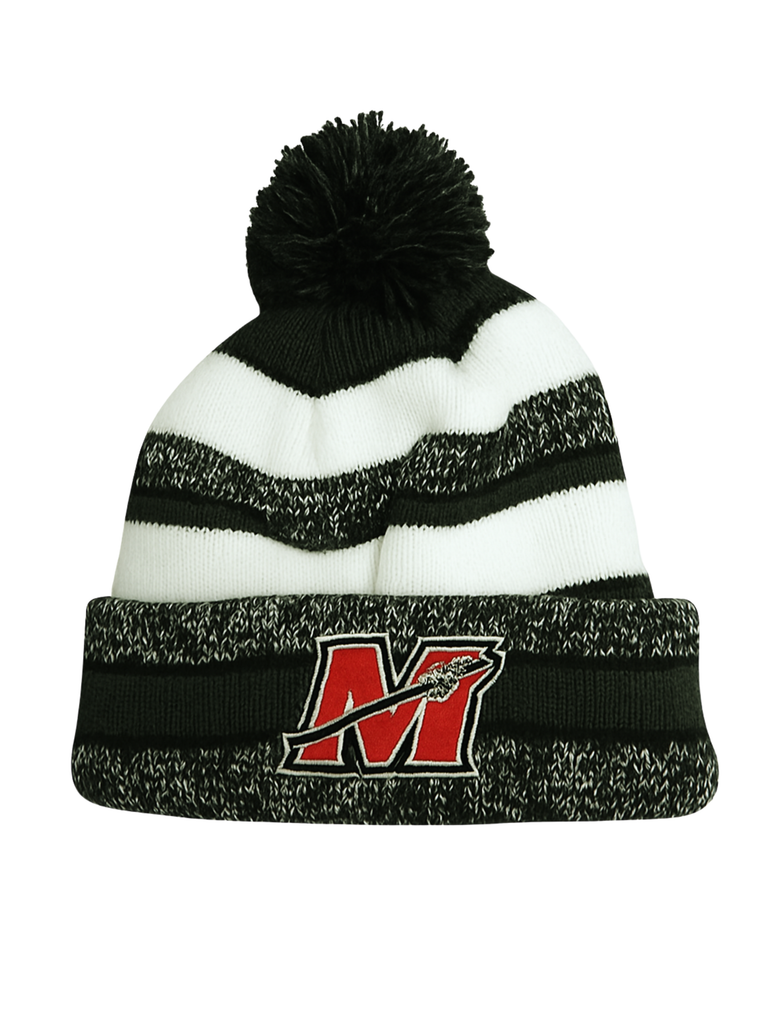 Warrior Black/Gray/White Stripe Pom Pom Hat